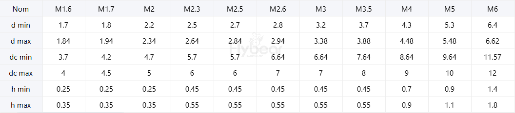 规格尺寸:M1.6-M42